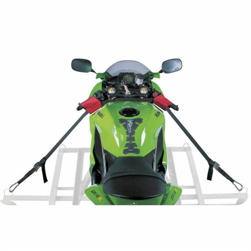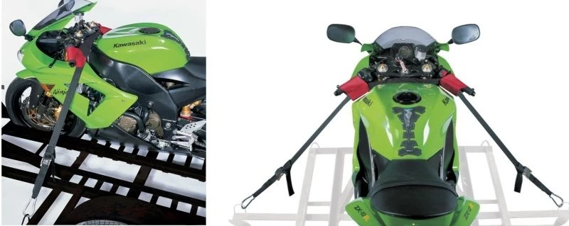 The Bar Strap Kit from Oxford is the ultimate tie-down strap and harness system and is the quickest, easiest and safest way of securing your motorcycle to trucks and trailers. With integrated cam buckle straps, the Bar Strap Kit requires no additional conventional strapping, simply attach it to your motorcycle handlebars, then use the buckle straps and high tensile Carabeena hooks to secure the bike to the trailer bed.