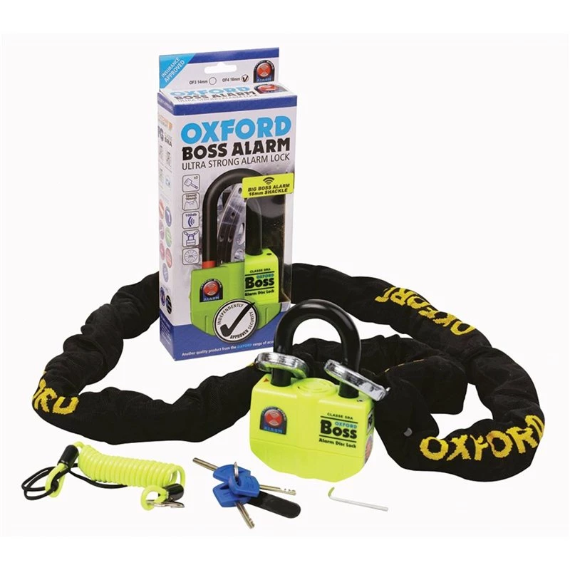 - The Oxford Boss and Big Boss alarm have been Independently approved by Thatcham Vehicle Security, SBSC Intygad Produkt, ART 4074 (14mm version)), ART 4075 (16mm version), ART 4076 (chain lock)